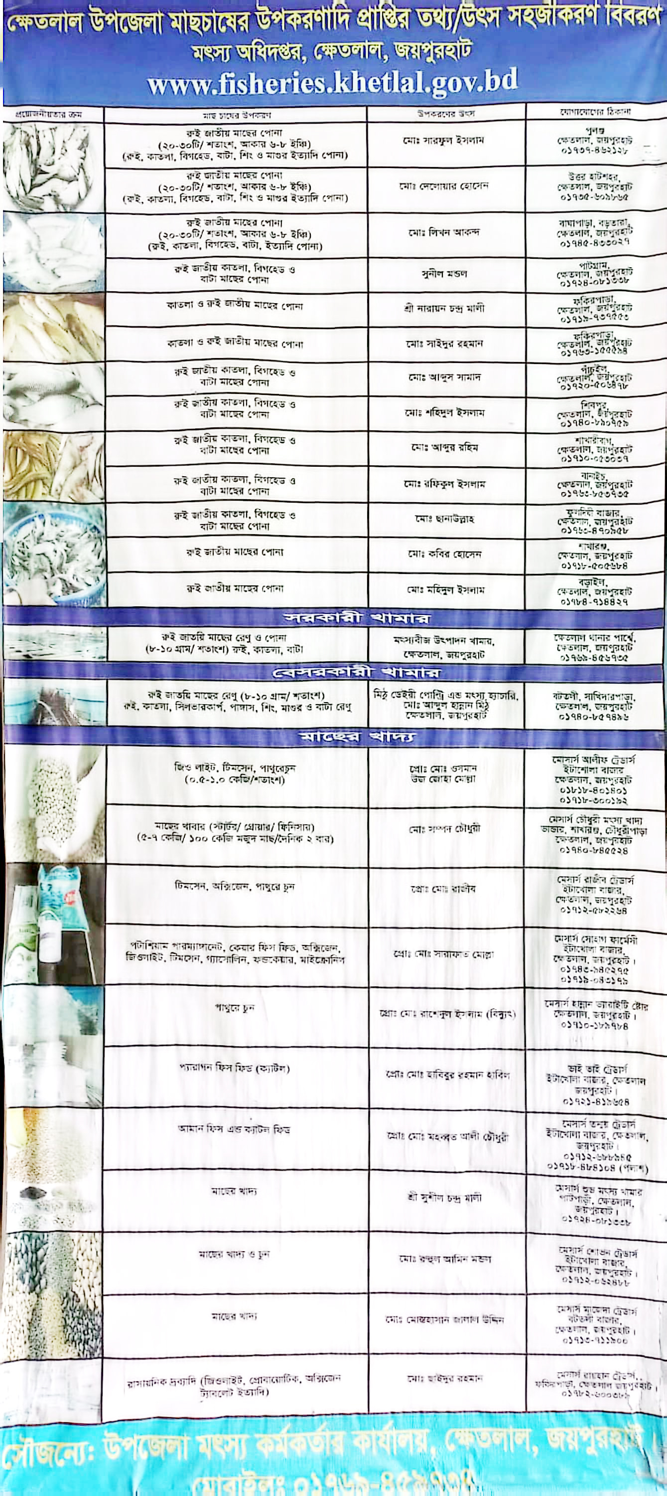 পানি ও মাছের রোগ ব্যবস্থাপনা সংক্রান্ত উপকরণের উৎস